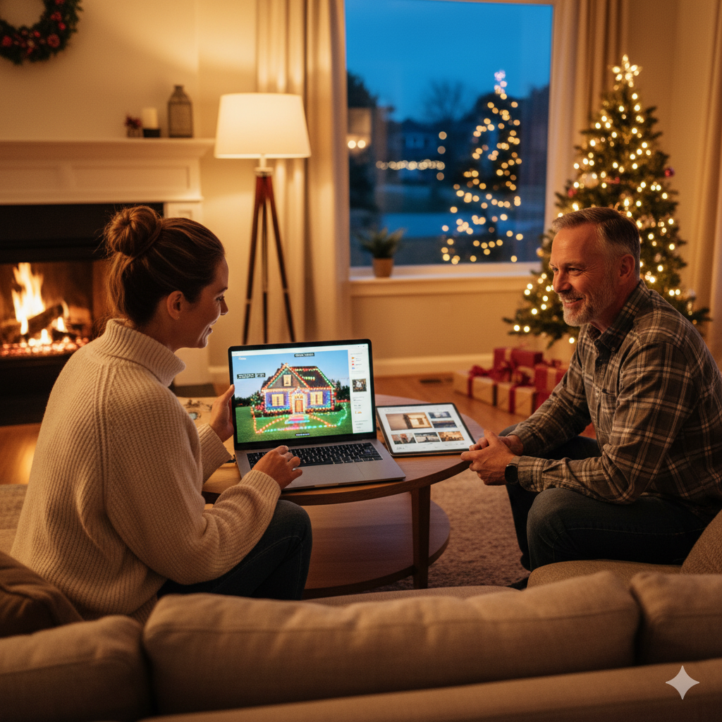 Our team helps you plan your lighting layout, choose colors, and maintain your setup throughout the season — including bulb checks and adjustments.