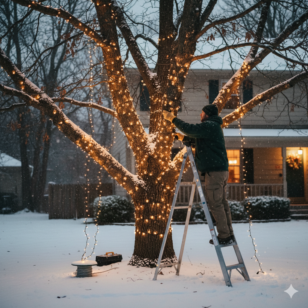 Brighten your holidays with professional Christmas light installation from Buffalo Landscaping. We design, install, and maintain dazzling light displays that make your home or business stand out — safely and beautifully.